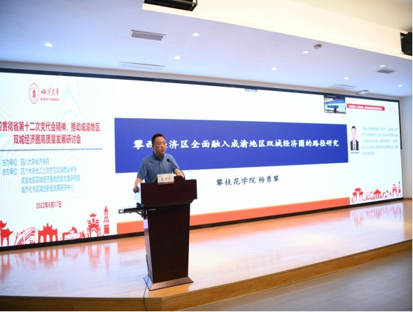 On June 17, 2022,a seminar onStudying and Implementing the Spirit of the 12th Provincial Party Congress and Promoting the High-quality Development of the Chengdu-Chongqing Economic Circlewas held in the N200 Academic Lecture Hall.The seminar was hosted by the School of Economics of Sichuan University, and co-organized by the School of Ecological Civilization Construction in the Upper Yangtze River of Sichuan University, the High Quality Development Research Institute of the Chengdu-Chongqing Economic Circle, and the Urbanization and Regional Innovation Pole Development Research Center.