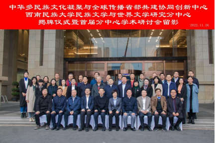 为贯彻落实党的二十大会议精神,紧密围绕中国式现代化建设,凝聚中国力量,彰显中国智慧,中华多民族文化凝聚与全球传播省部共建协同创新中心西南民族大学民族文学与世界文学研究分中心揭牌仪式暨首届分中心学术研讨会于11月26日上午在成都隆重举行。会议采用线上线下结合的方式进行,线下会议在成都祥宇宾馆举行。